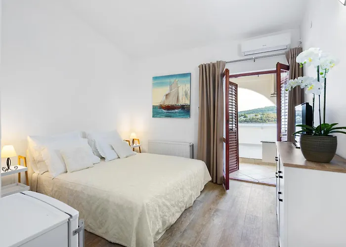 A Black Pearl Tisno hotel vendégei számára napozórész, napozóterasz és közös társalgó elérhető, a Strand Jazine pedig mindössze 11 percnyi sétára található. A tengerre néző 3 csillagos hotel naponta büfé reggelivel várja vendégeit.